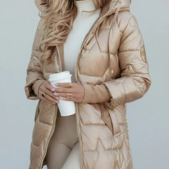Brand New, no tags - Two lovely Leviana & Daughters jackets - Coffee brow and beige. Wrap yourself in modern comfort with this long, soft quilted jacket. The insulating padding retains heat without adding bulk, while the fixed hood protects against wind and light rain. An ideal piece to stay stylish and warm, from the city center to weekend getaways in the countryside. Selling for $99.95 from boutique seller.