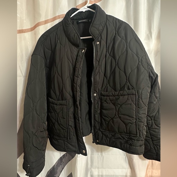 black quilted jacket with front pockets and a zip closure from Amazon. Length falls right at the waist