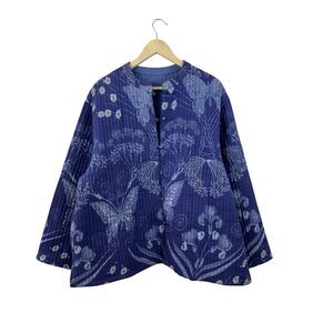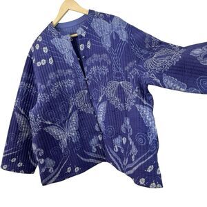 Quilted Jacket Plus Size Button Coat Butterfly Purple Blue Womens READ*****