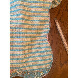 Quilted King Size Bedspread Reversible Floral & Striped Bright Teal Yellow and P