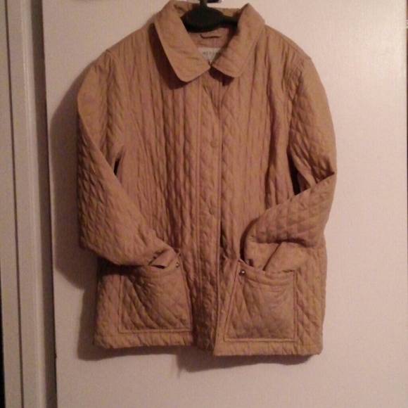 Tan quilted jacket with 2 outside pockets in excellent condition