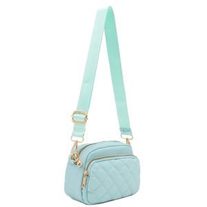 Quilted Nylon Crossbody Bag With Wide Strap Lht Blue :>