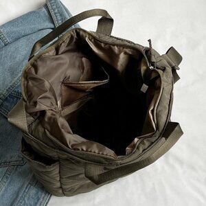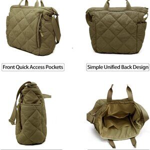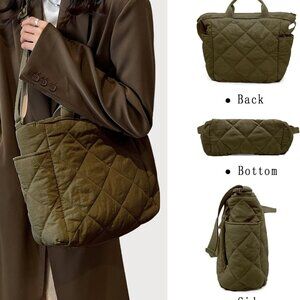 Features: This spacious tote is made from high-quality quilted nylon, lightweight yet sturdy, with multiple pockets—great for organizing your essentials like wallet, keys, water bottle, and more. The versatile design includes top handles and shoulder straps so you can wear it your way. Perfect for work, shopping, or travel.