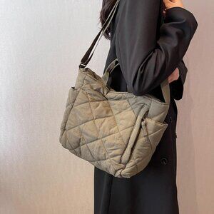 Quilted Nylon Crossbody Bag for Women Large Multi-Pockets Tote Perfect for Daily