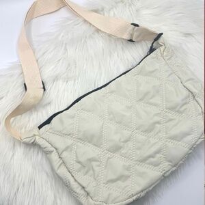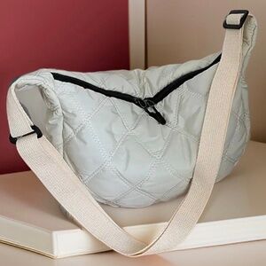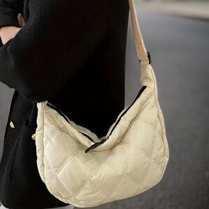 Quilted Nylon Crossbody Hobo Bag in Cream