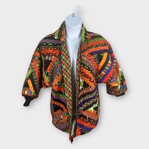 Quilted Patchwork Halloween Fabric Patterned Jacket Women's L/XL Unique Handmade