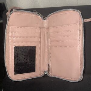 Chic and compact, this quilted pink crossbody bag is perfect for on-the-go style. Its elegant design adds a touch of sophistication to any outfit. has Silvertone hardware detachable Crossbody strap outside foam pocket with snap over strap inside has 7 card slots one ID slip pocket one zip pocket large Bill pocket completely zip closure