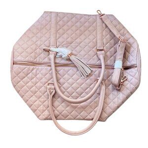 Quilted Pink Weekender Duffel Bag With Tassel Accent & Adjustable Strap