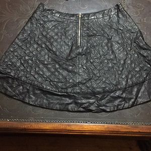 Quilted black pleather mini skirt. Cute skirt with tights for the fall/ winter. Has a lining and in great condition.
