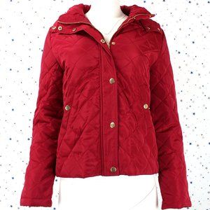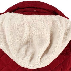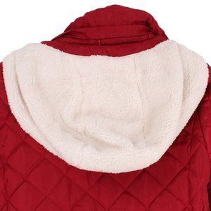 Quilted Puffer Jacket Fur Lined Hood Elbow Patch Size L