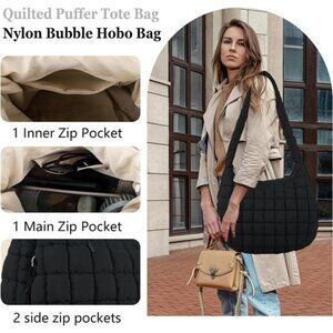 Quilted Puffer Tote Bag with 17.7" × 15" × 7.8" size,The perfect size easily accommodates your cosmetics, smartphones, laptop, sunglasses, umbrella, wallets, and daily necessities. Suitable for walking, hiking, shopping, dating, fitness, working, traveling, and daily use.
