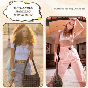 Quilted Puffer Tote Bag with 17.7" × 15" × 7.8" size,The perfect size easily accommodates your cosmetics, smartphones, laptop, sunglasses, umbrella, wallets, and daily necessities. Suitable for walking, hiking, shopping, dating, fitness, working, traveling, and daily use.