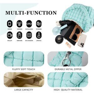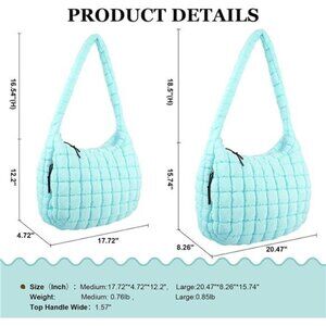 Quilted Puffer Tote Bag with 17.7" × 15" × 7.8" size,The perfect size easily accommodates your cosmetics, smartphones, laptop, sunglasses, umbrella, wallets, and daily necessities. Suitable for walking, hiking, shopping, dating, fitness, working, traveling, and daily use.