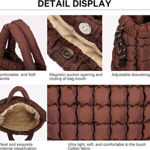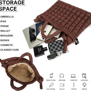 Quilted Puffer Tote Bag Women Large Light Travel Shoulder Crossbody