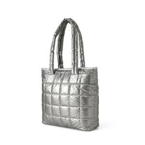 Quilted Puffer Tote - Silver - Double Handle- XL- Lightweight - NWT