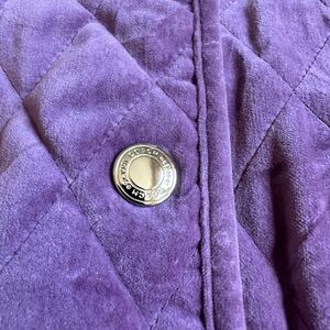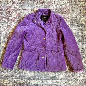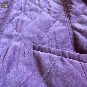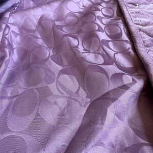 Beautiful quilted Coach jacket. No flaws. Has a 100% cotton exterior with the look of velvet. The iconic logo lines the interior of the jacket as well.