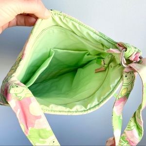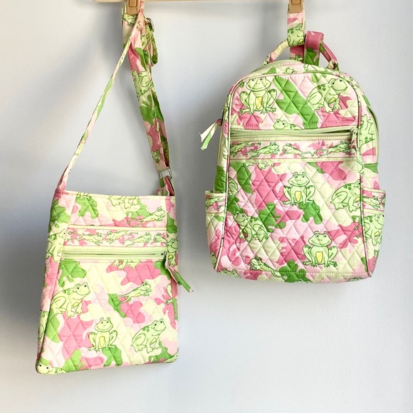 How cute is this frog patterned set. The crossbody and backpack combo is washable and perfect for summer outings or to send off with the kids.