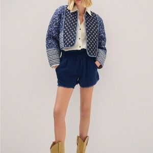 Mango Quilted Reversible Jacket. 100% cotton fabric. Quilted design. Reversible design. Oversize design. Short design. Printed design. Wrap collar. Long sleeve. Unclosed. Fits like M/L.