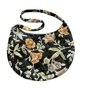 Quilted Shoulder Purse Bag Zipper Attached Strap Floral Dark Coquette Boho