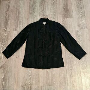 Vintage 50s 100% Silk Asian Chinese Quilted Relaxed Reversible Floral Boxy Black Split Hem Full Snap Lightweight Open Collar Lapel Jacket Long Sleeve Fairy Fairy Goth Whimsigoth Evening
