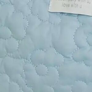 Charming sky blue makeup bag. Features polyester quilted floral design. Perfect for travel and organizing cosmetic essentials and more. Very spacious with zippered closure.