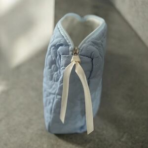 Quilted Sky Blue Floral Makeup Bag NWOT