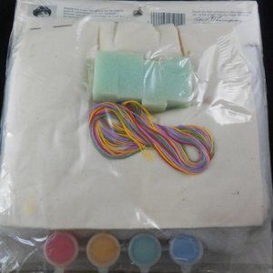 Designs for the Needle Quilted Stencil Candlewick Kit 5011 Laying Hen Vintage 1983 Chicken Eggs. This is a sealed kit but there are a few tears in the paper. It appears to have all the contents including the needle. This is a kit from 1983 so there is a good chance that the fabric paint is not good (dryed up). Measures 11X14" when complete. Frame not included.