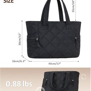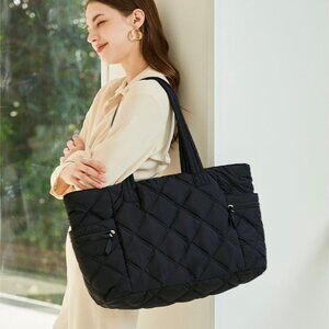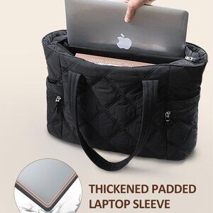 Quilted Tote Bag Women Lightweight Puffer Travel Laptop Work Gym Black