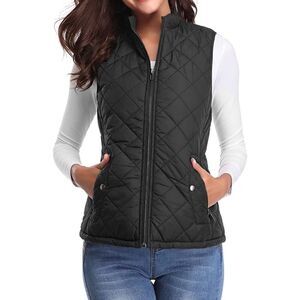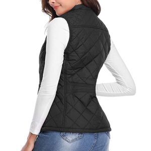 Lightweight black quilted full-zip vest. Material: Shell: 100% Polyester, Linning: 100% Polyester.
