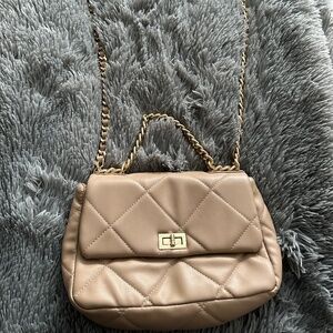 Brand new with tags. Womans quilted camel colored handbag. Chain strap can be worn crossbody, or on the shoulder, and you can also carry on your wrist with the short strap.