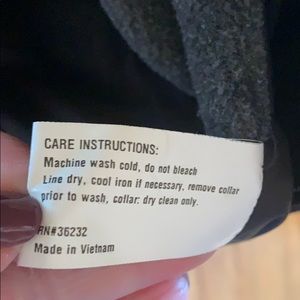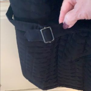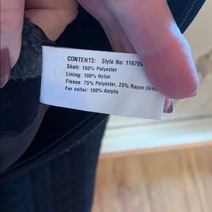 Black, quilted zip front jacket. Removable faux fur collar. Fully lined, upper back lined with fleece. Zippered front pockets, adjustable side buckles for cinching waist. Size 3x, from Gallery Woman.