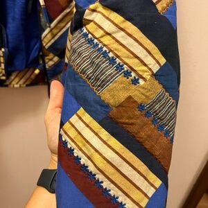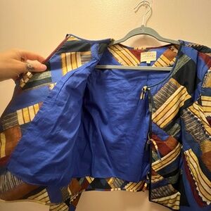 A quilted jacket with lots of colors and knit. Bought last season