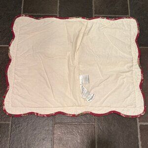 Charming quilted patchwork pillow sham with double wedding ring quilt block design, standard size.