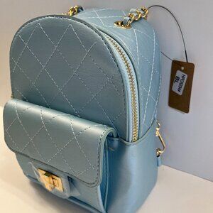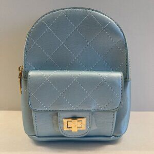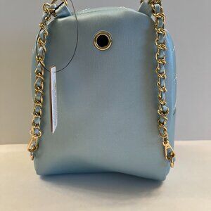 Quilted Puffer Backpack in Shiny Sky / Baby Blue W/ Gold Rope Straps - NWT