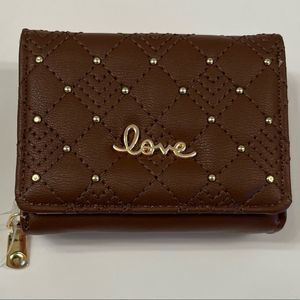 Quilted Studded Love Wallet - Dark Brown - Gift Idea