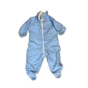This vintage Quiltex winter snowsuit set is a charming and practical choice for your little one. Sized for 6 months, the blue retro-style one-piece outerwear features a cozy quilted design perfect for keeping baby warm during cold winter days. The snowsuit includes a front zipper for easy dressing and built-in hand and foot covers to help protect against the chill. Adding to its charm, the set also comes with a handmade knit hat that pairs beautifully with the classic design. This used set shows light wear consistent with age but remains in good condition and ready for continued use. Perfect for collectors of vintage baby clothing or parents seeking a unique, warm, and timeless winter outfit. Great for everyday wear, photo shoots, or as a nostalgic gift. Don’t miss this retro Quiltex baby snowsuit with handmade hat—both practical and stylish. A rare vintage baby find from the mid-century era that offers warmth, comfort, and classic style.