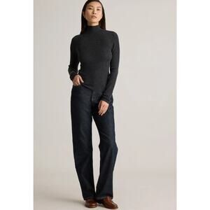 Quince 100% Cashmere Featherweight Ribbed Mock Neck Turtleneck Sweater Gray