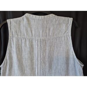 The Quince 100% European Linen Blue White Women's Striped Swing Dress in XL is a stylish and comfortable dress perfect for a casual occasion. This sleeveless dress features a round neck and button closure, made of woven linen fabric in a blue and white striped pattern. The short dress length and mini style make it ideal for the summer and spring seasons, adding a touch of colorful elegance to your wardrobe. The Quince brand ensures quality and a trendy design that will make you stand out from the crowd.