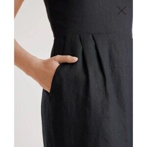 Quince 100% European Linen Scoop Neck Midi Dress Large L Black Basic Pockets