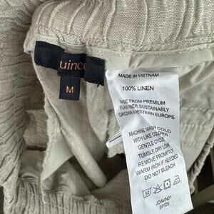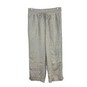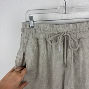 Pull on styling, wide elastic waistband with drawstring, wide leg, pockets, flax color, size medium.