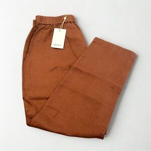 Quince 100% Linen Pants Small Rust Brown | Elastic Waist | NWT