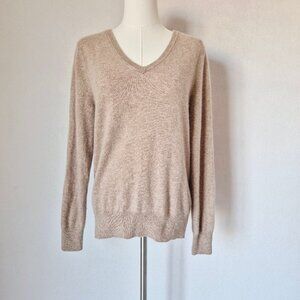 Quince 100% Mongolian Cashmere V-Neck Sweater Pullover Oatmeal