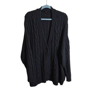 Quince 100% Organic Cotton Oversized Cable Cardigan Charcoal Sweater Size XL