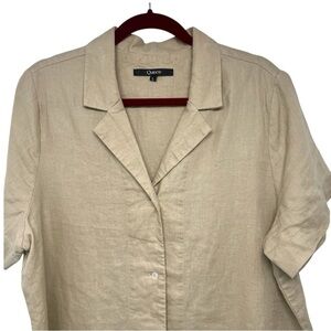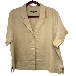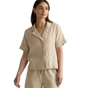 Quince 100% Organic Linen Short Sleeve Button Front Boxy Casual Shirt Women Larg
