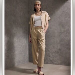 Quince 100% Organic Linen Short Sleeve Button Front Boxy Casual Shirt in Driftwood Women’s Large