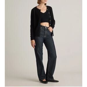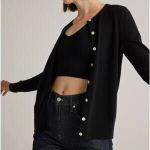 Quince 2024 100% Mongolian Cashmere 2.0 Cardigan Sweater Small Black Preppy