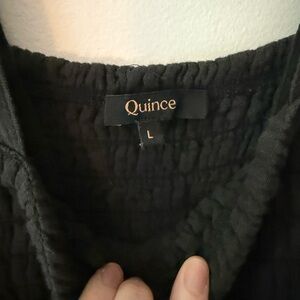 Quince smocked gauzy wide leg jumpsuit size large in black