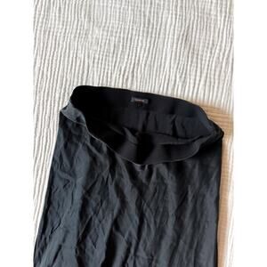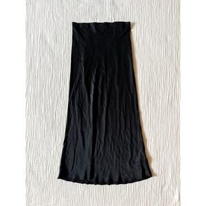 Women’s size large. 100% silk. Washable. Black in color. Maxi length. Elastic waistband. Pull-on style.