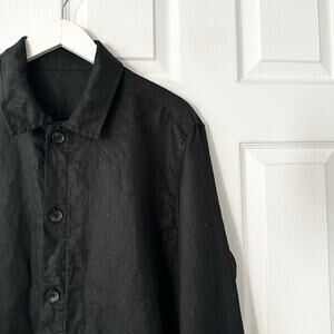 Quince Classic Black 100% Linen European Box Shirt Jacket Button Front Men Large