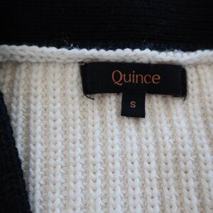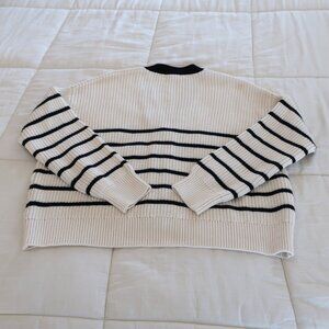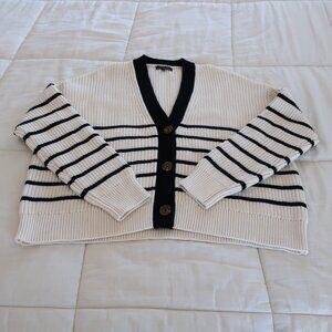 Quince 100% Organic Cotton Fisherman Boxy Cropped Cardigan, Off-white/Black stripe, Size Small